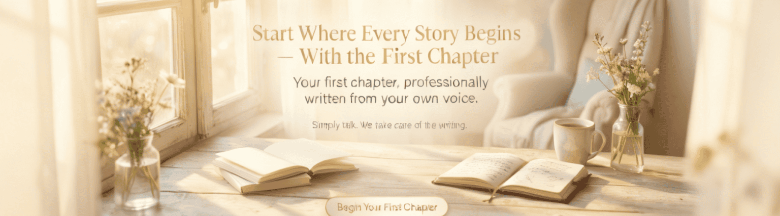 Your Memories Spoken Aloud, Become A Professionally Written Book.