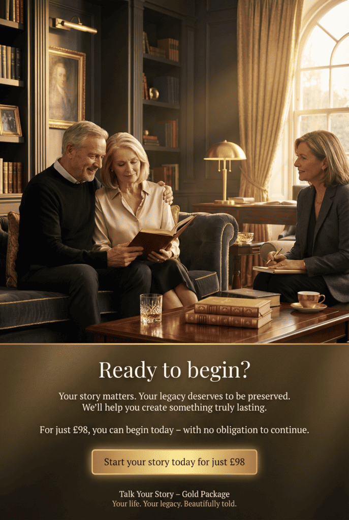 Talk Your Story logo featuring microphone and open book design.